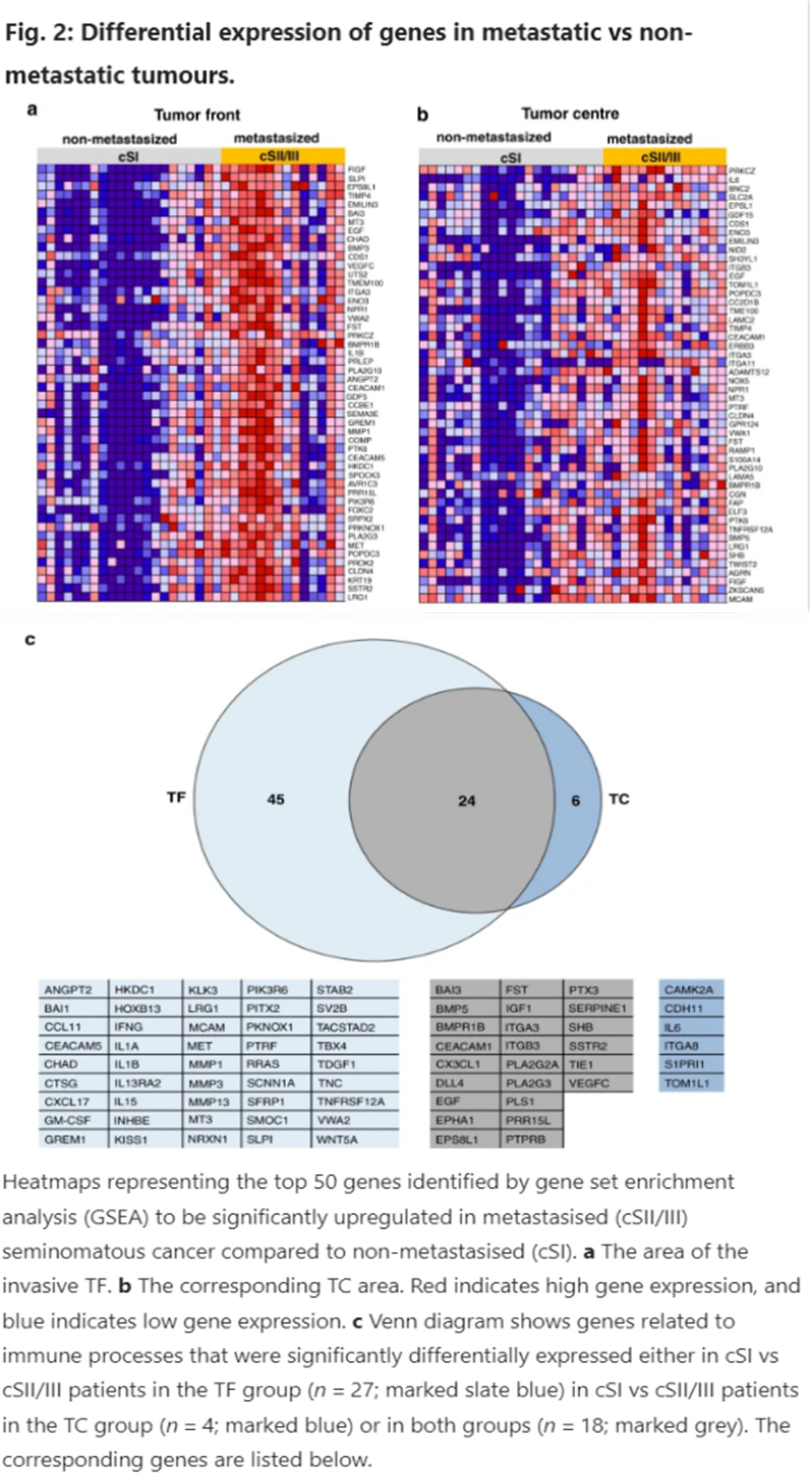 轉(zhuǎn)錄組分析揭示了轉(zhuǎn)移性精原細(xì)胞生殖細(xì)胞腫瘤侵襲性腫瘤前沿免疫反應(yīng)途徑的上調(diào)